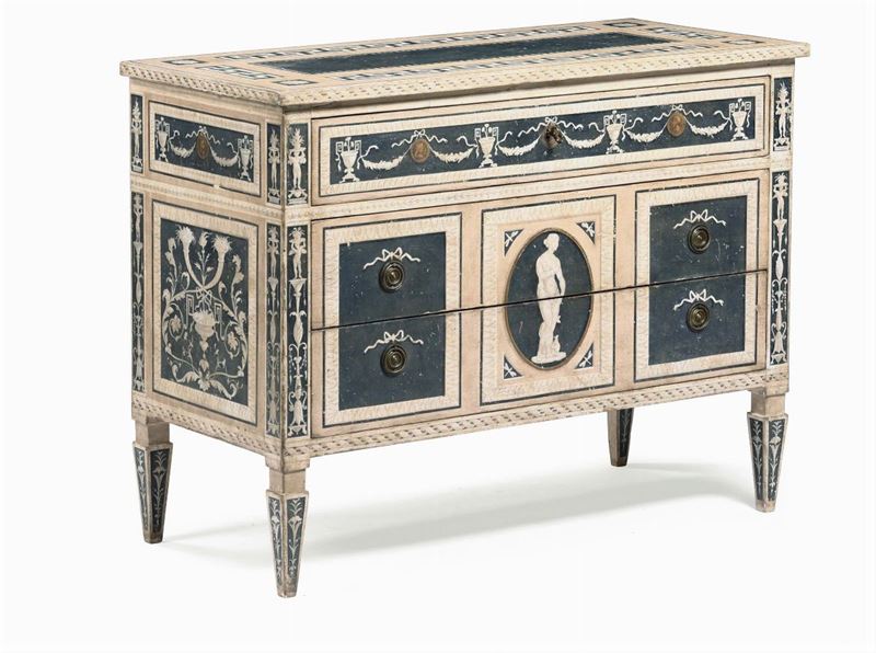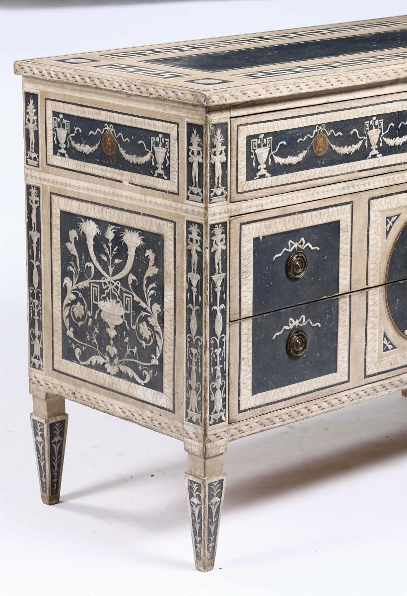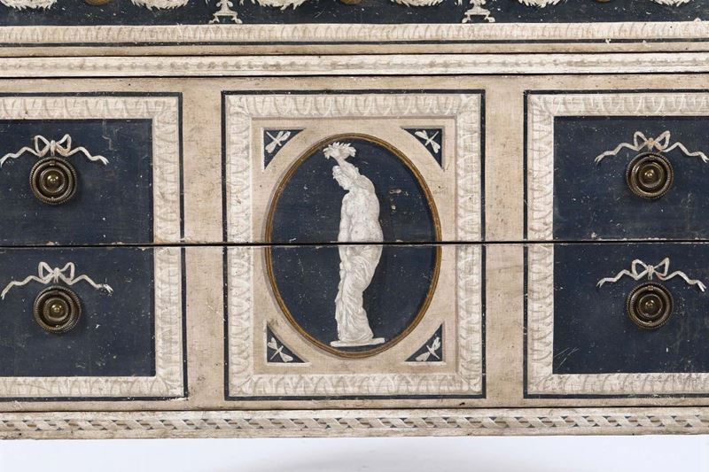 Coppia di cassettoni in pioppo dipinto a motivi neoclassici