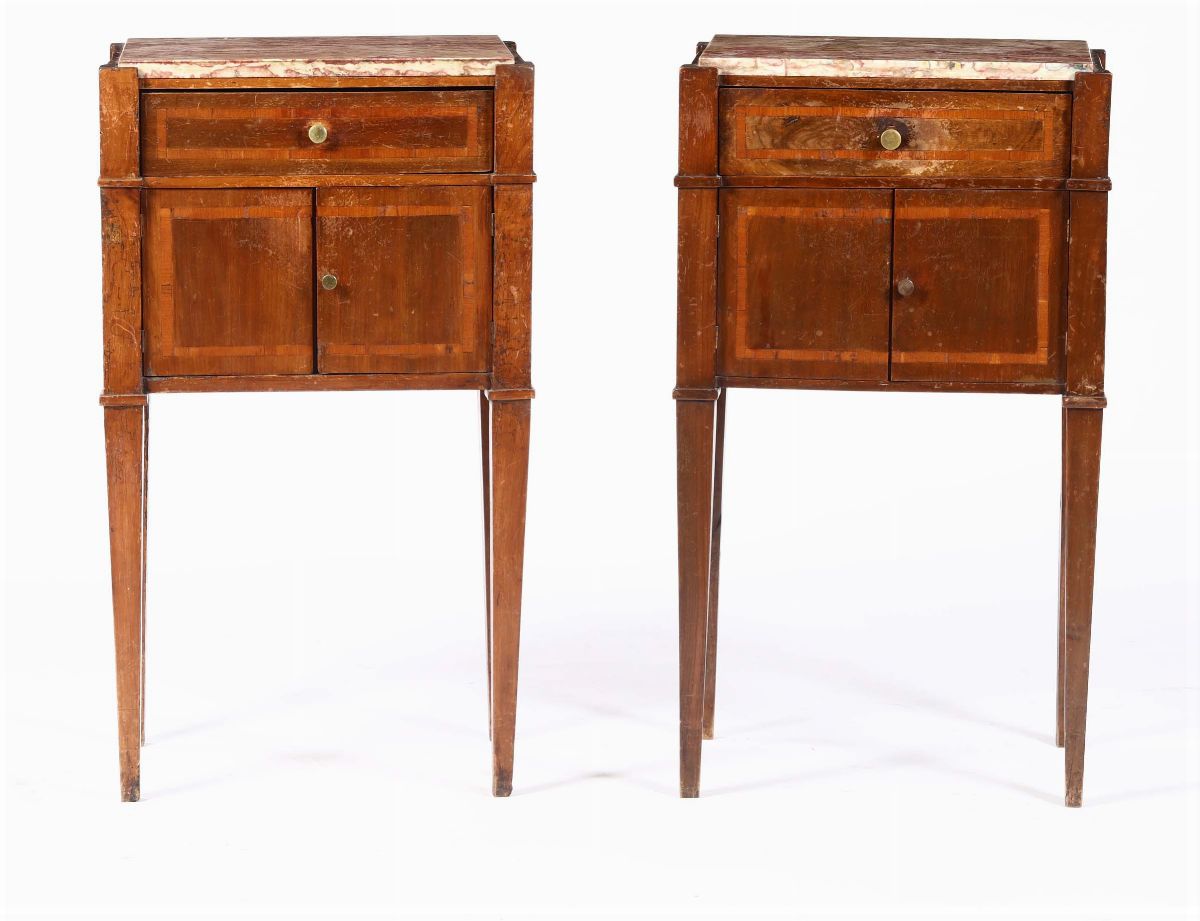 Coppia di comodini Luigi XVI in noce, fine XVIII secolo