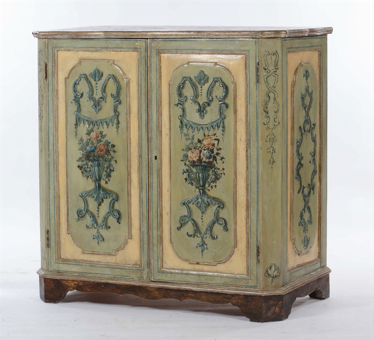 decori policromi floreali su fondo verde, cm 122x60x121 (difetti e riprese alla laccatura)