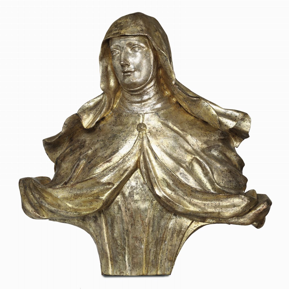 Coppia di sculture in legno dorato e argentato raffiguranti Estasi di Santa Teresa d’Avila, XVIII secolo