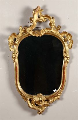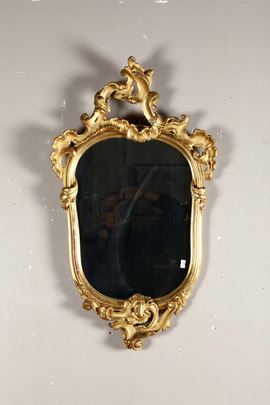 Coppia di specchierine in legno intagliato e dorato, XIX secolo
