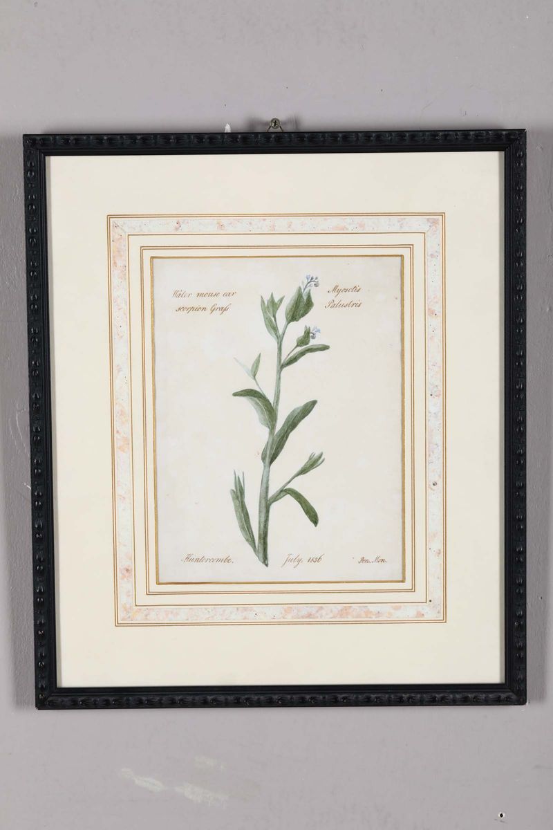 Disegno raffigurante studio di botanica per una Mysitis Palustris. Datato 1836