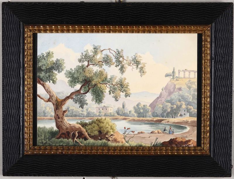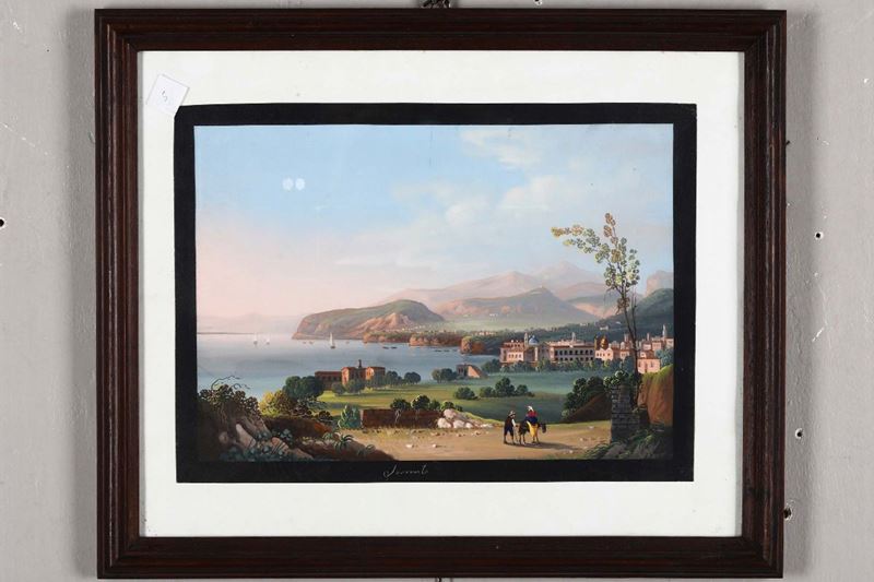 Due gouaches diverse raffiguranti paesaggio e golfo di Napoli, XIX secolo
