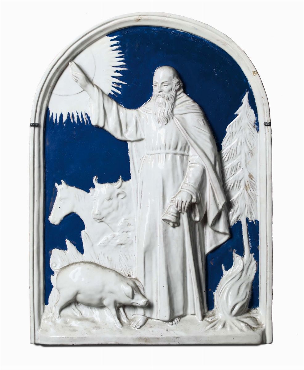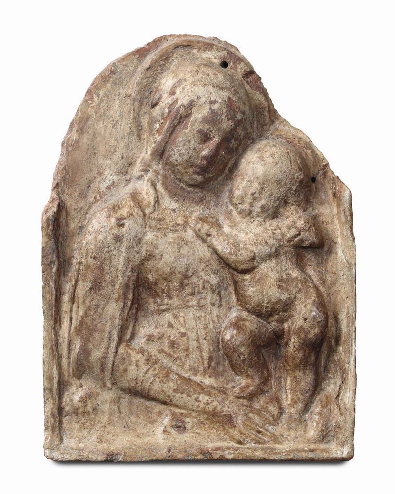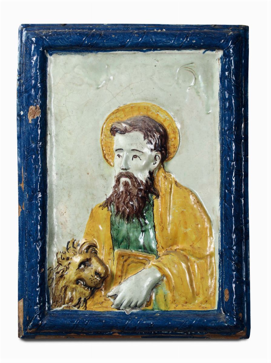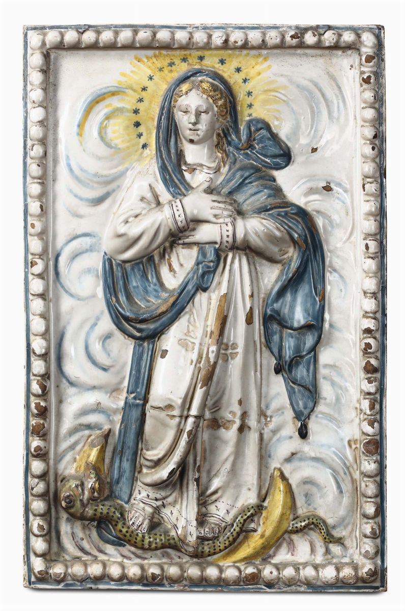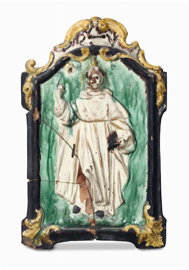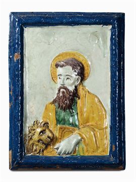 Gruppo di dieci placche in terracotta e maiolica policroma di varie epoche e misure