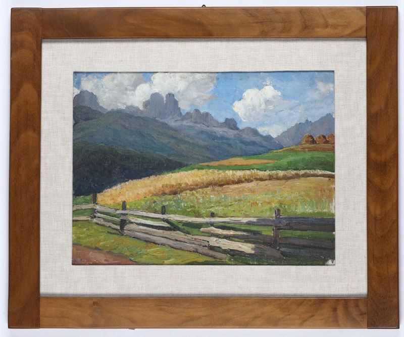 Guido Meineri (1869-1944) Paesaggio montano con staccionata