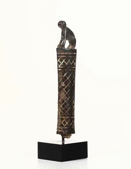 Impugnatura di coltello righettata a celle d’alveare, in bronzo, sormontata da cane stante. Arte medioevale veneta, probabilmente [..]