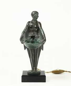 Lampada liberty in bronzo, XIX-XX secolo