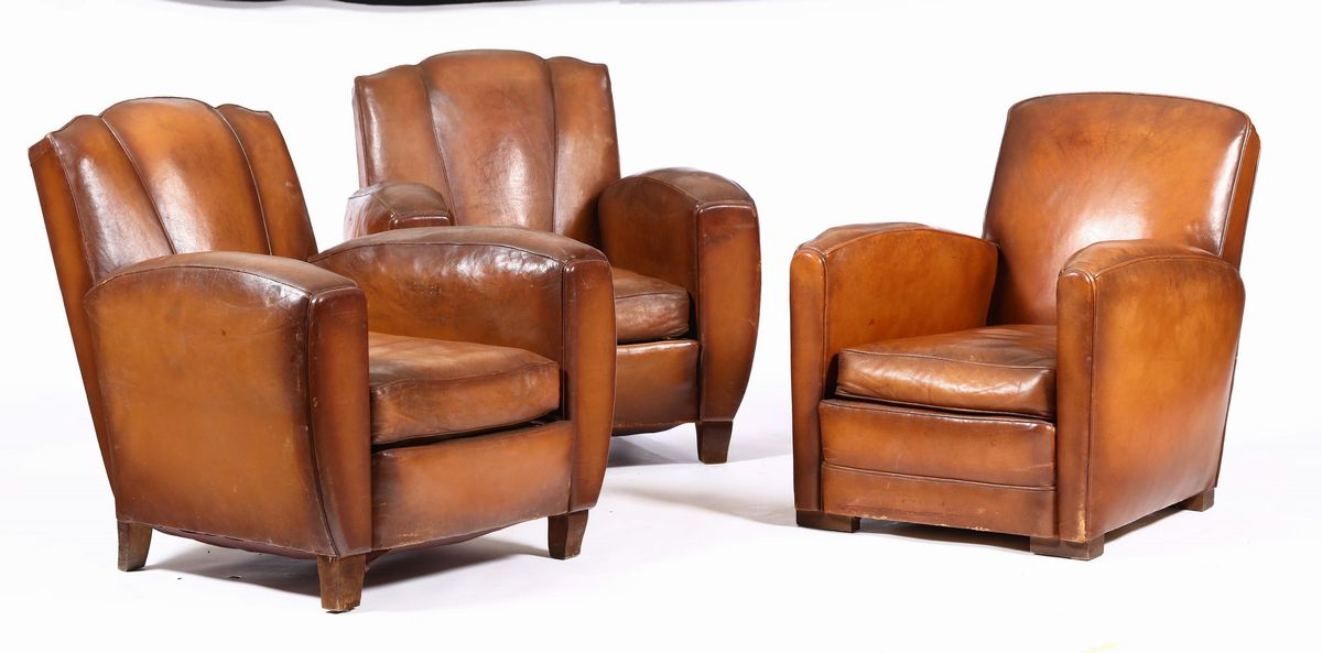tre poltrone in pelle Mod. Vanity Fair, cm 85x87x90