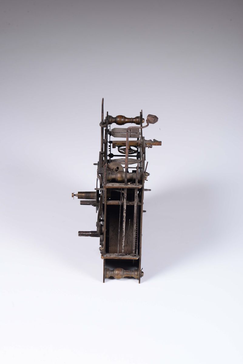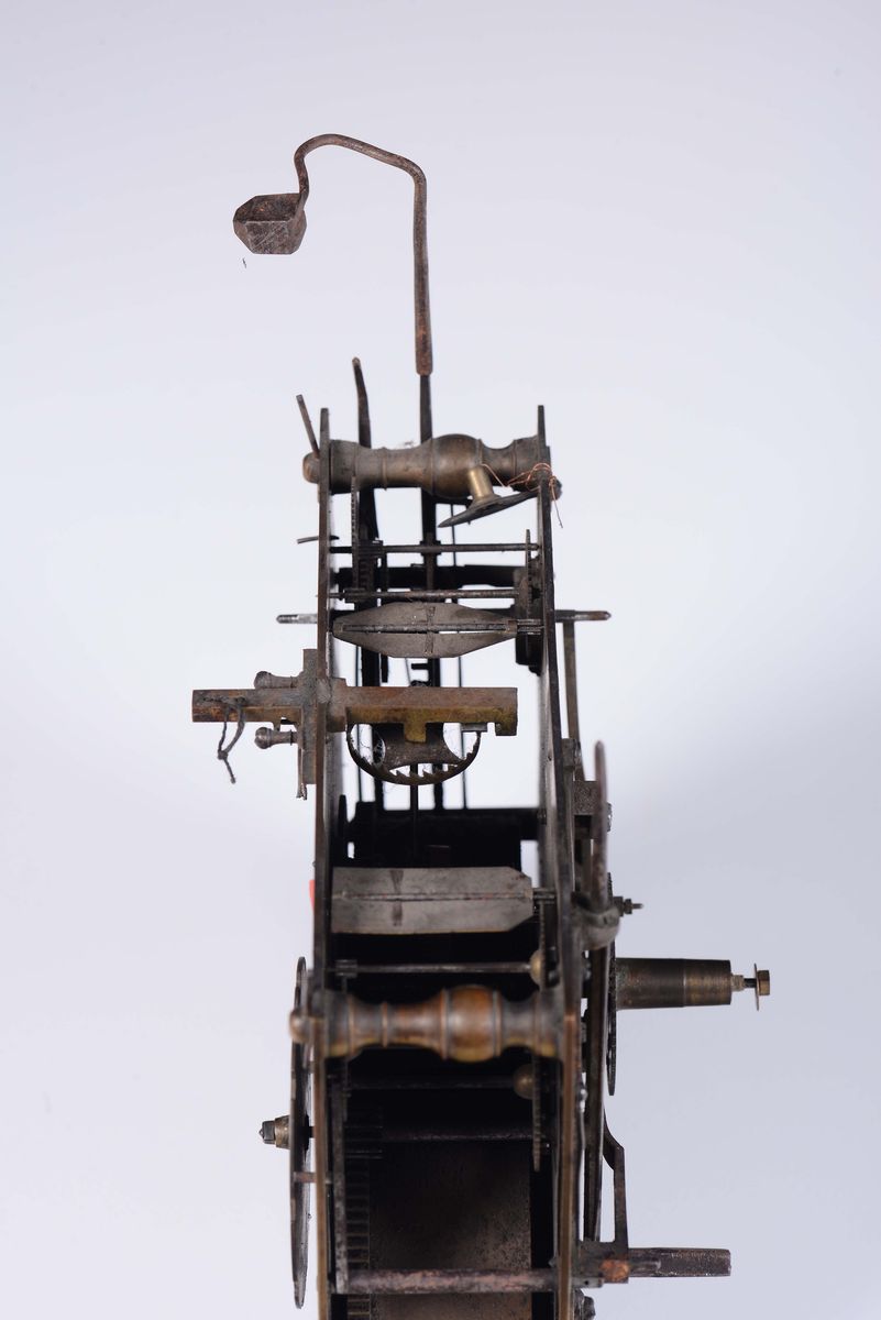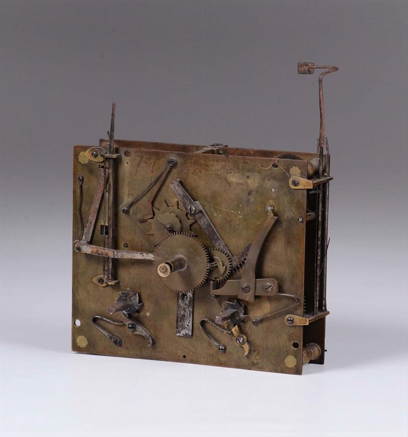 tra cui una meccanica Cartel, Francia XVIII secolo, cm 18x15x6; una inizio '800, due meccaniche francesi di fine '800, una a solo tempo a bilanciere e l’altra a pendolo; l’altra è una meccanica in ferro del 700