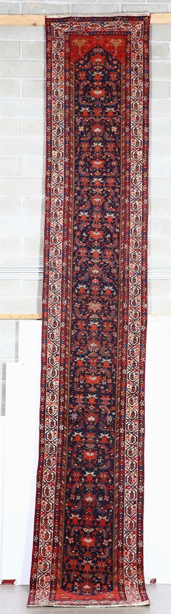 campo blu con decoro harsang, bordura chiara, cm 593x104