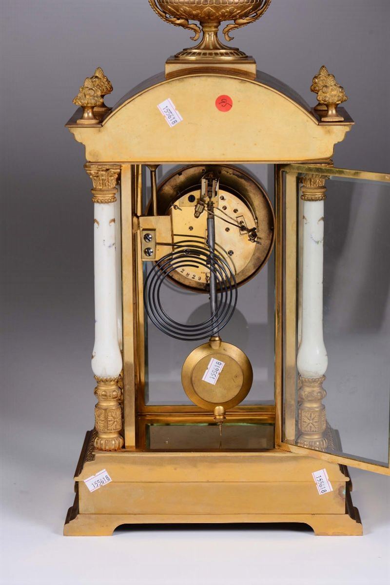 Pendola a portico in bronzo dorato, Francia XIX secolo