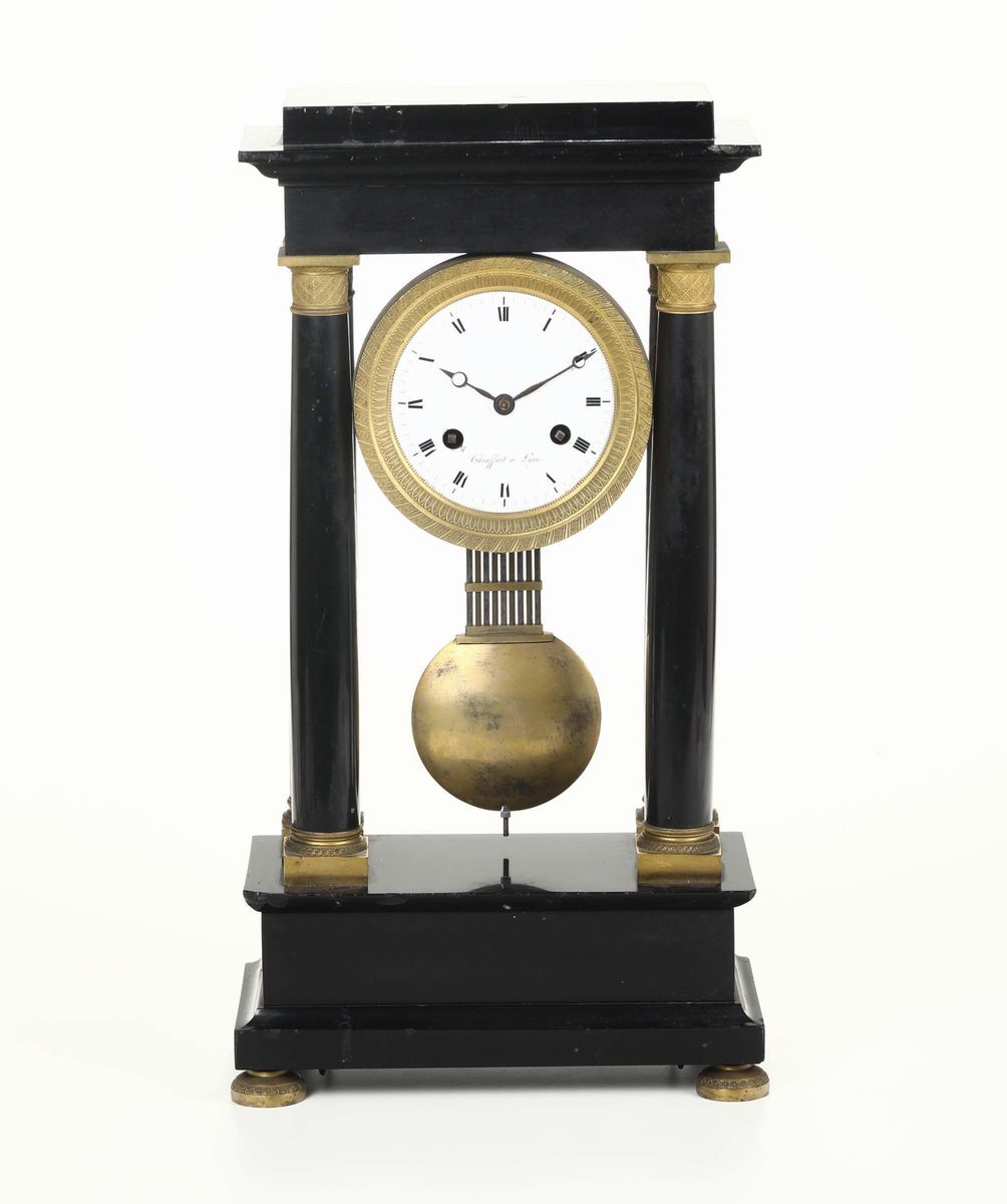 Pendola da tavolo a tempietto in marmo nero, Chiaffait a Lyon, XIX secolo