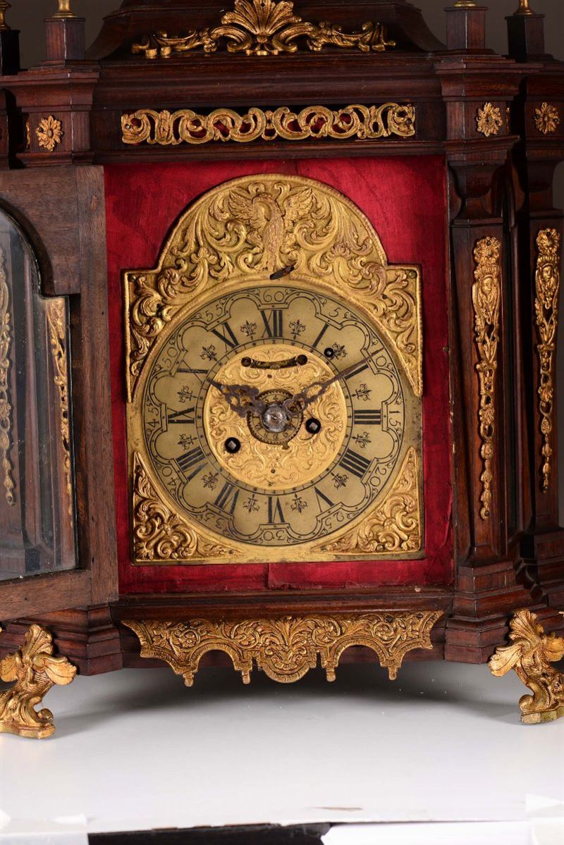 Pendola romana con cassa impiallacciata in palissandro con riporti in bronzo dorato, Roma, XVII secolo