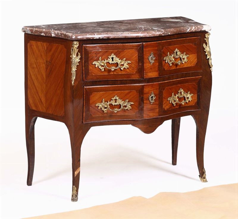 Piccolo comò lastronato a due cassetti, Francia fine XVIII secolo