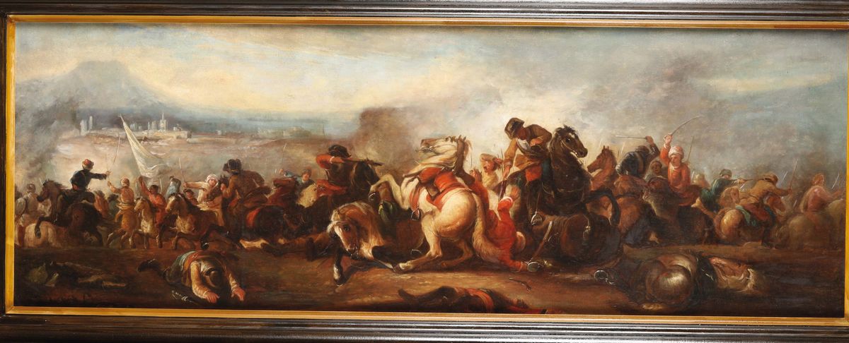 Pittore del XIX secolo Coppia di battaglie