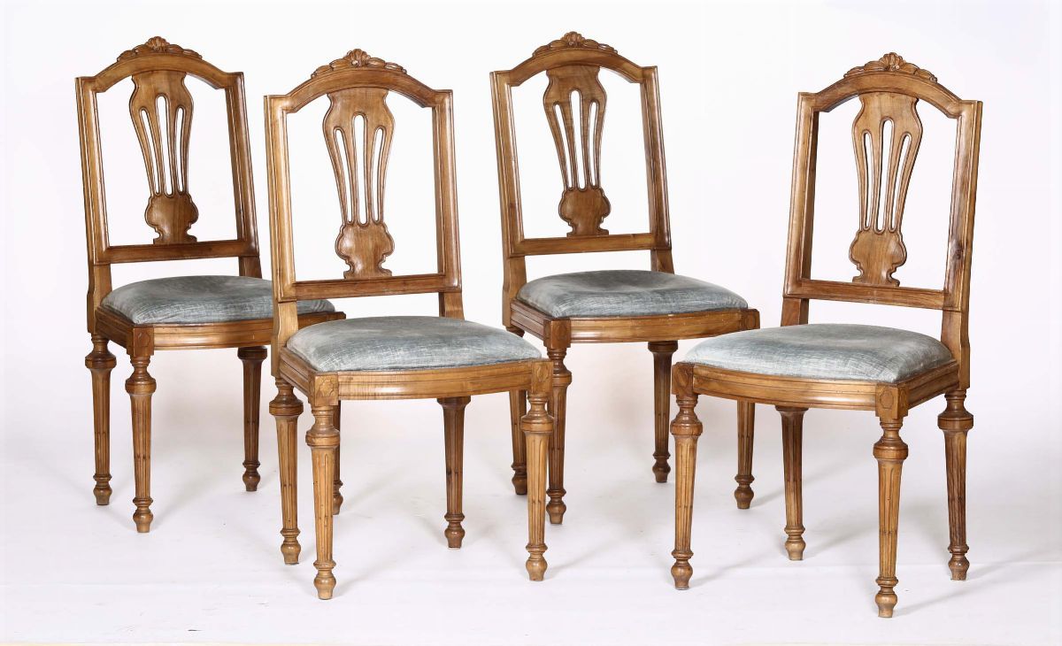 Quattro sedie in stile Luigi XVI in noce, XIX secolo