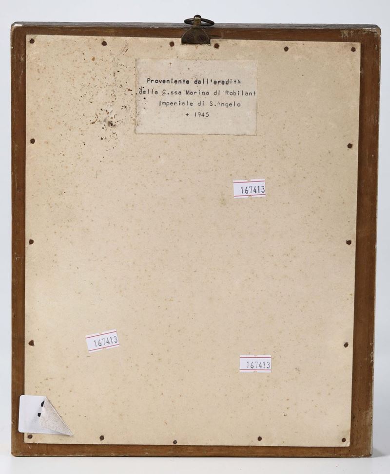Ricamo in seta, XVII secolo Madonna con Bambino e San Giuseppe