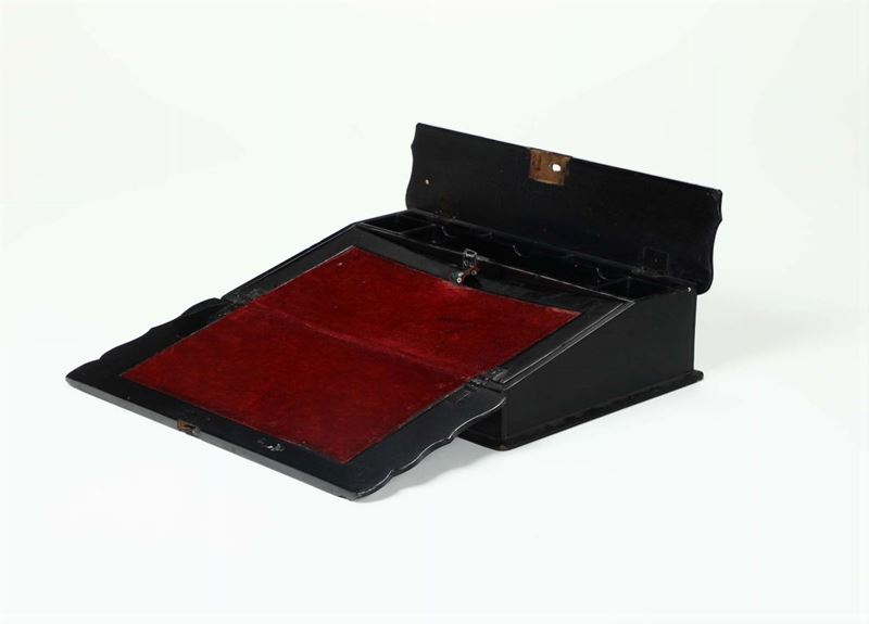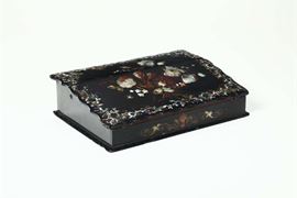 Scatola in legno ebanizzato, dipinto e intarsiato, XIX secolo