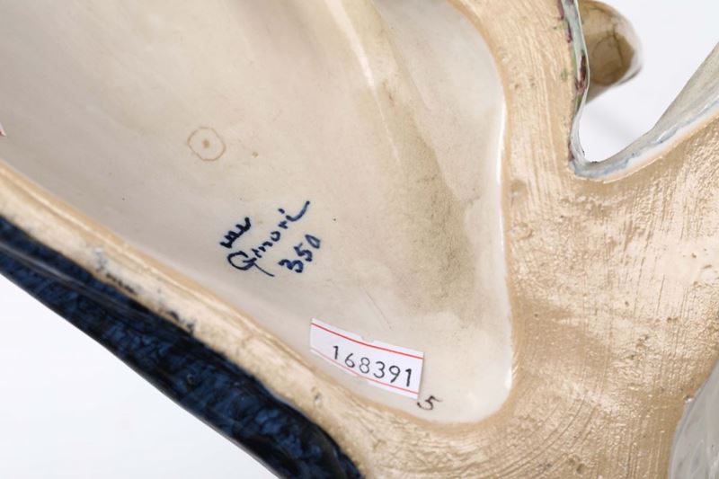 Maiolica policroma. Marca: Ginori sormontato da una corona, numero 350. Altezza cm 48. Piccolissime sbeccature