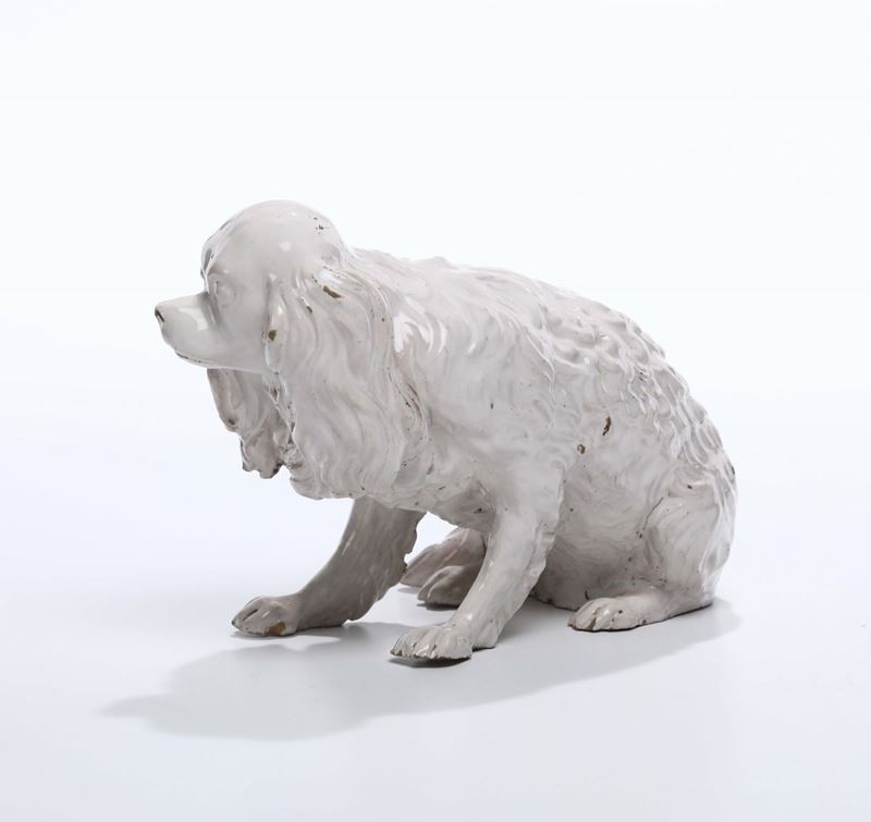 Raffigura un cane bolognese seduto