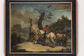 Scuola del XVIII secolo Scena contadina con cavaliere