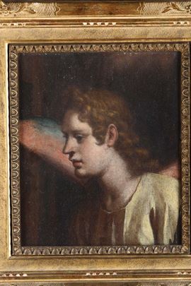 Frammento di dipinto ad olio su tela , cm 27x34, in cornice dorata