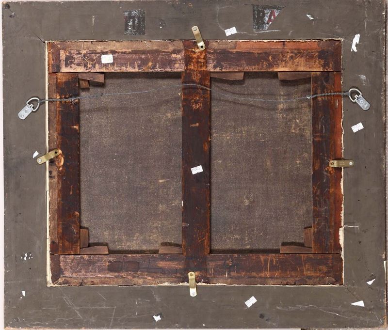 Scuola genovese del XVIII secolo Scena di genere con personaggio in armatura