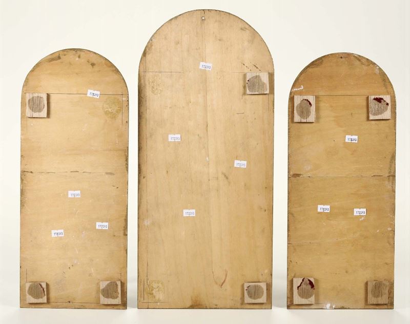 trittico ad olio su tela applicata su compensato, cm 47 e cm 55 circa