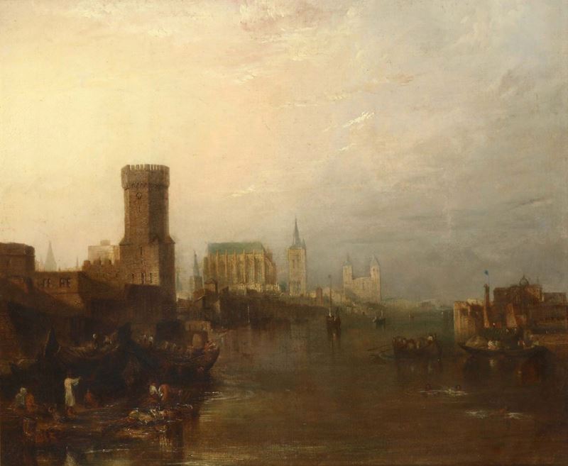 Scuola nordeuropea del XVIII secolo Scorcio di città dal fiume
