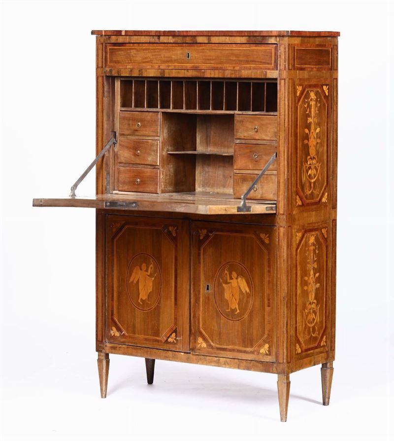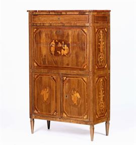 Secretaire lastronato ed intarsiato, XIX secolo