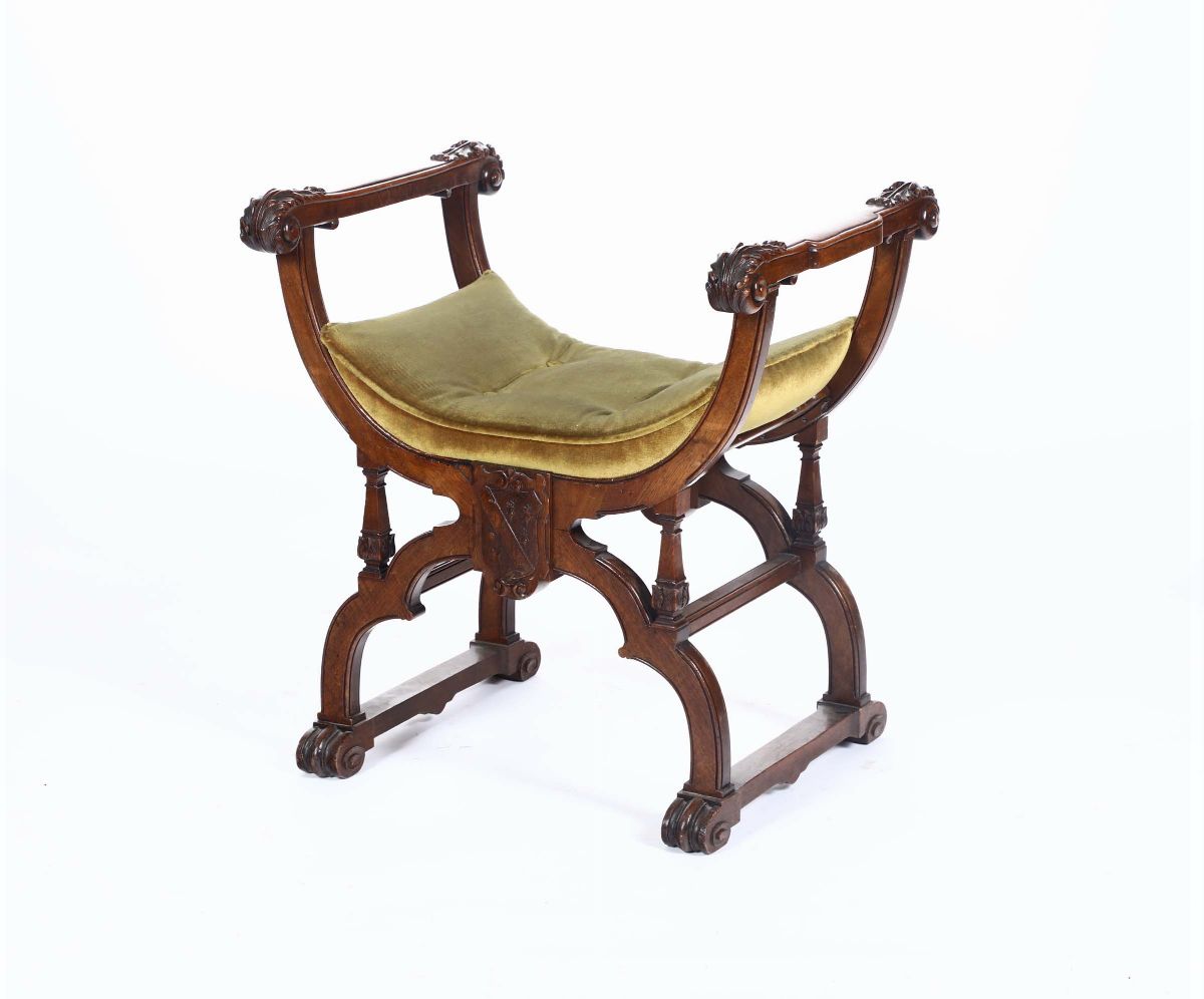 Sgabello a sella in legno intagliato, XIX secolo