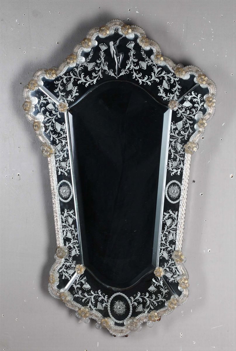 Specchiera in vetro di Murano, 1950 circa