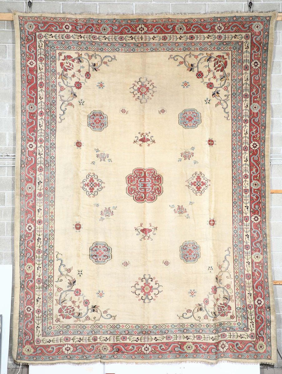 campo giallo con piccolo medaglione centrale, angolari floreali cm 470x350