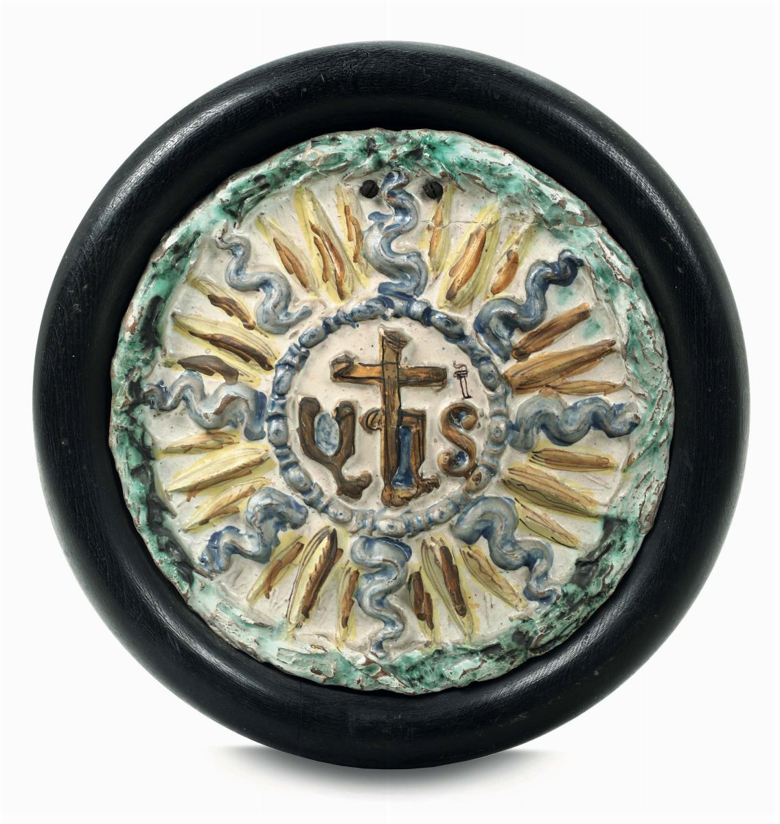 Di forma rotonda ospita un medaglione, con cornice radiale e le tre lettere: “YHS”, il cosiddetto monogramma di Cristo.