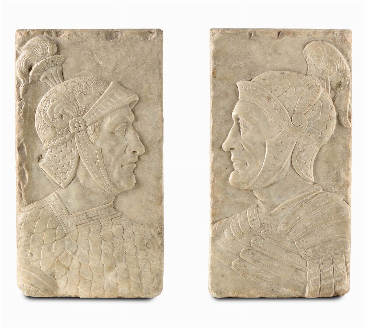 Two profiles of warriors wearing helmets, marble bas-relief, Rome 16th century