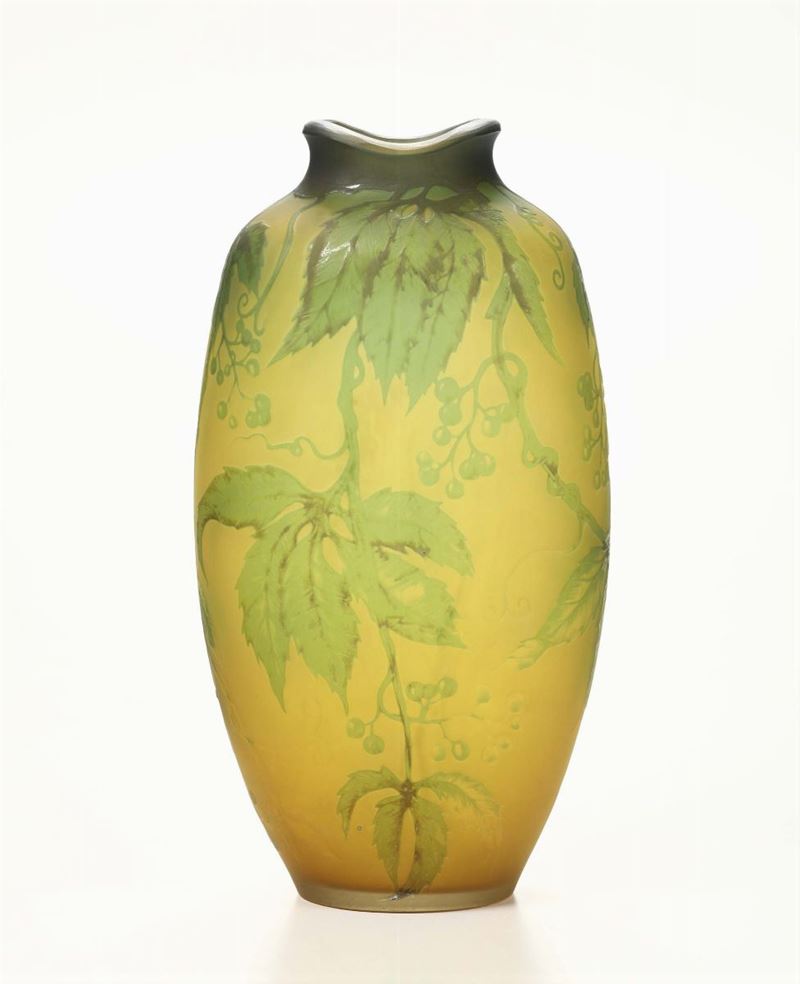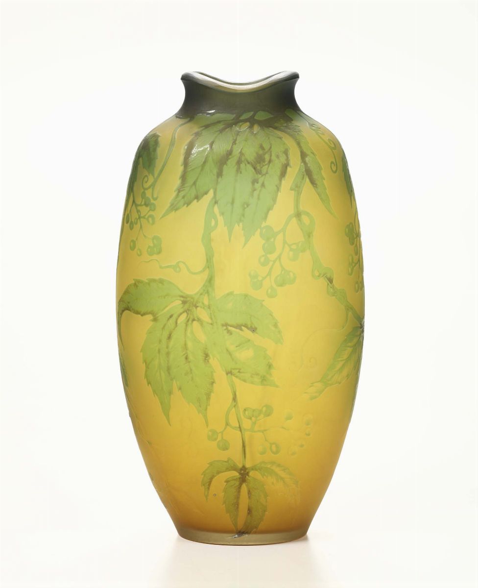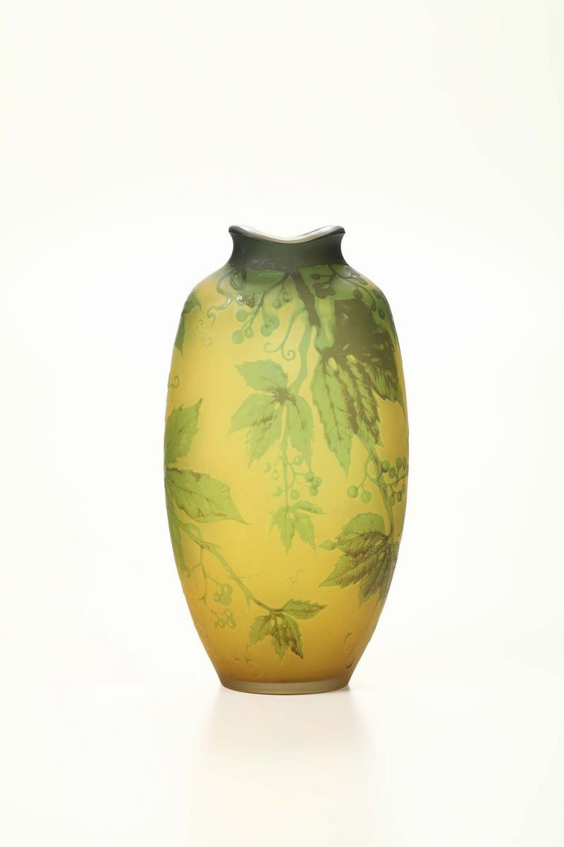 Vaso in vetro decorato con tralci di vite, XX secolo