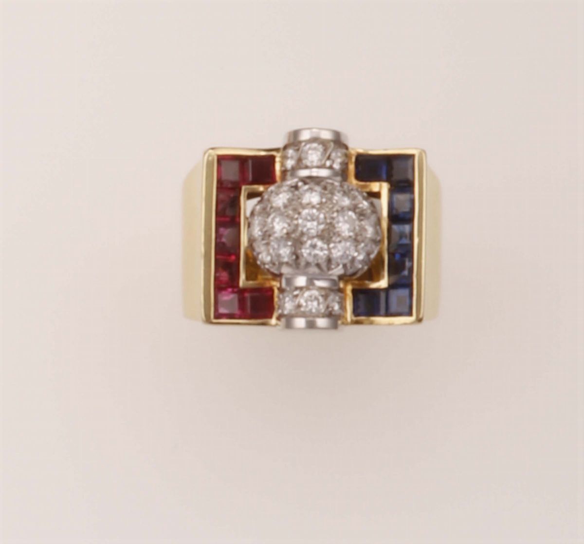 Sapphire, ruby and diamond ring