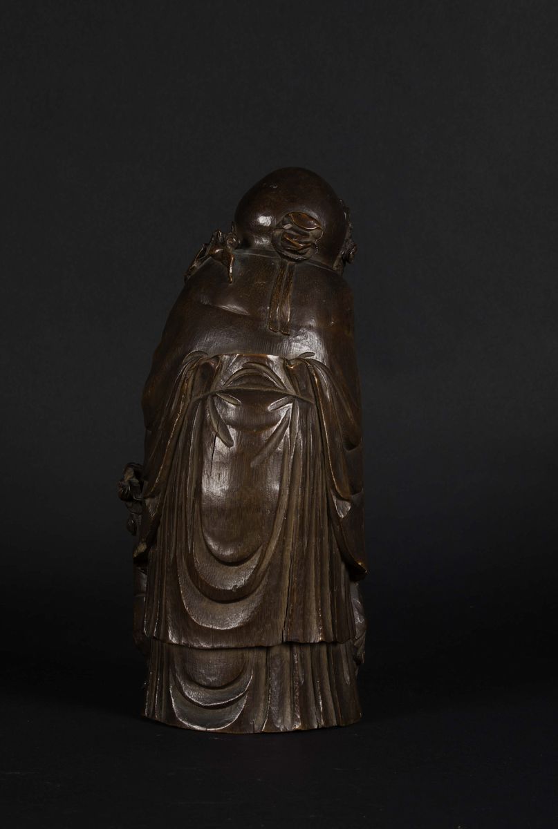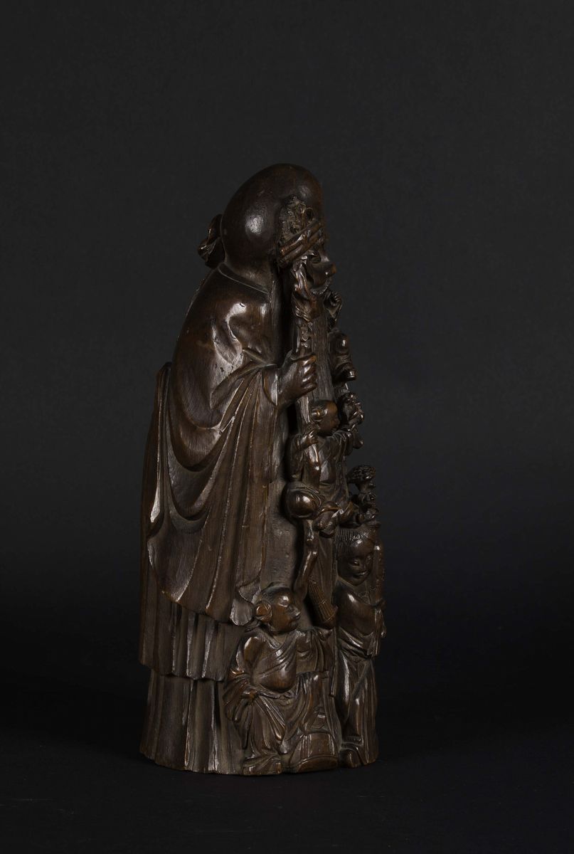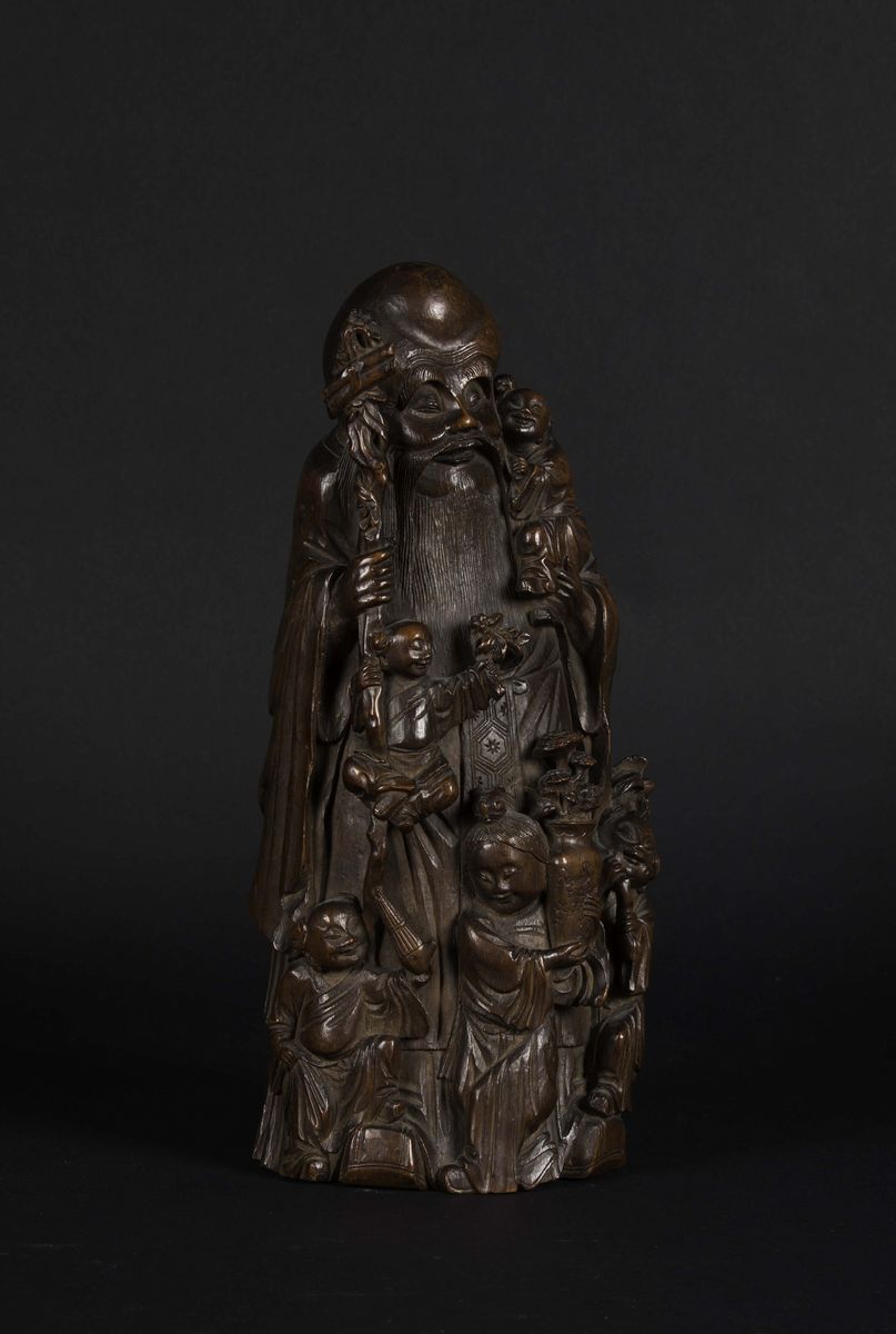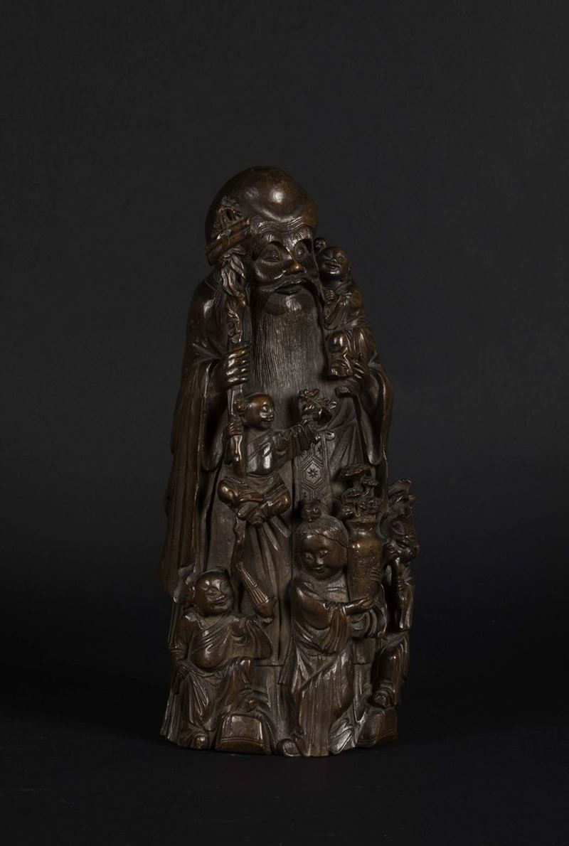 A bamboo wood Shoulao figure with children, China, Qing Dynasty, 19th century