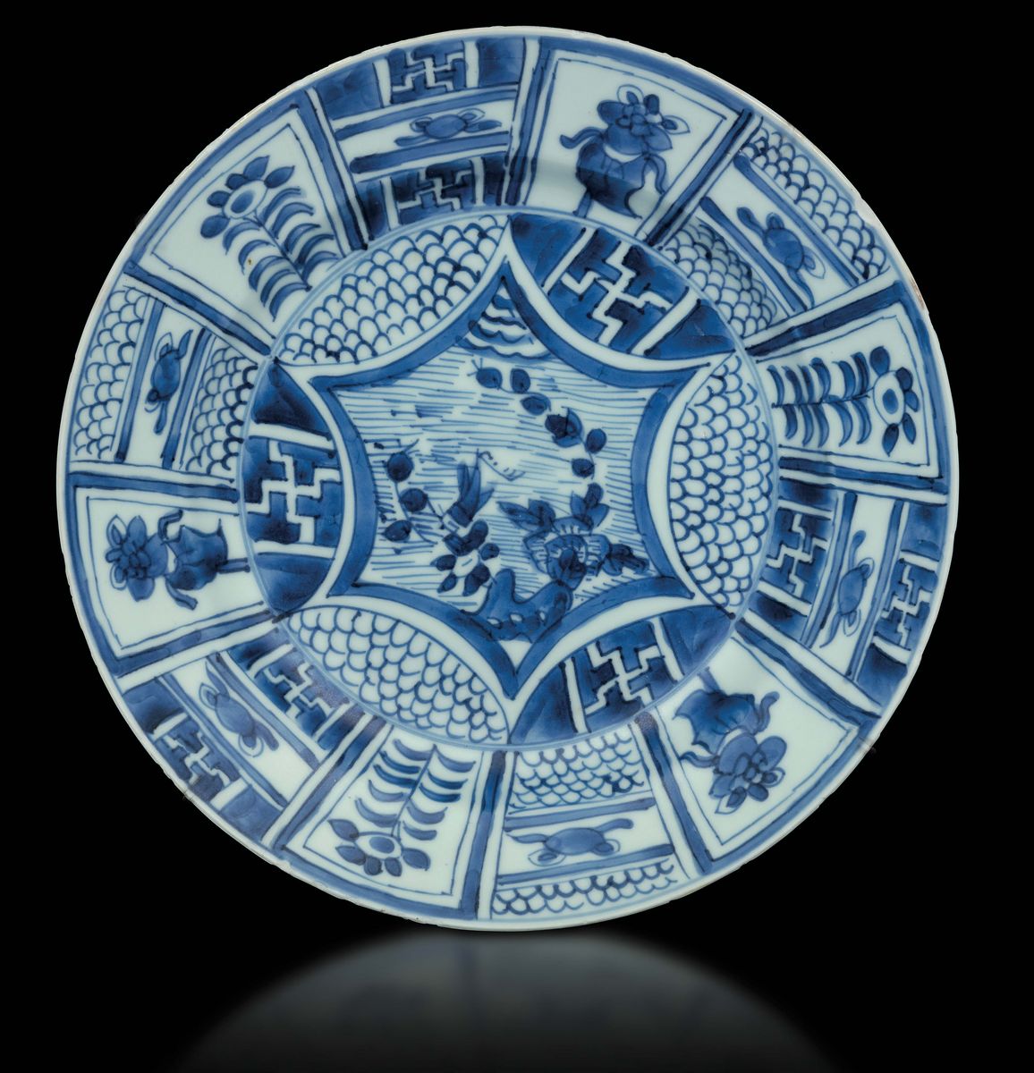 A blue and white porcelain plate with a naturalistic decor, China, Ming Dynasty, Wanli period (1573-1619)