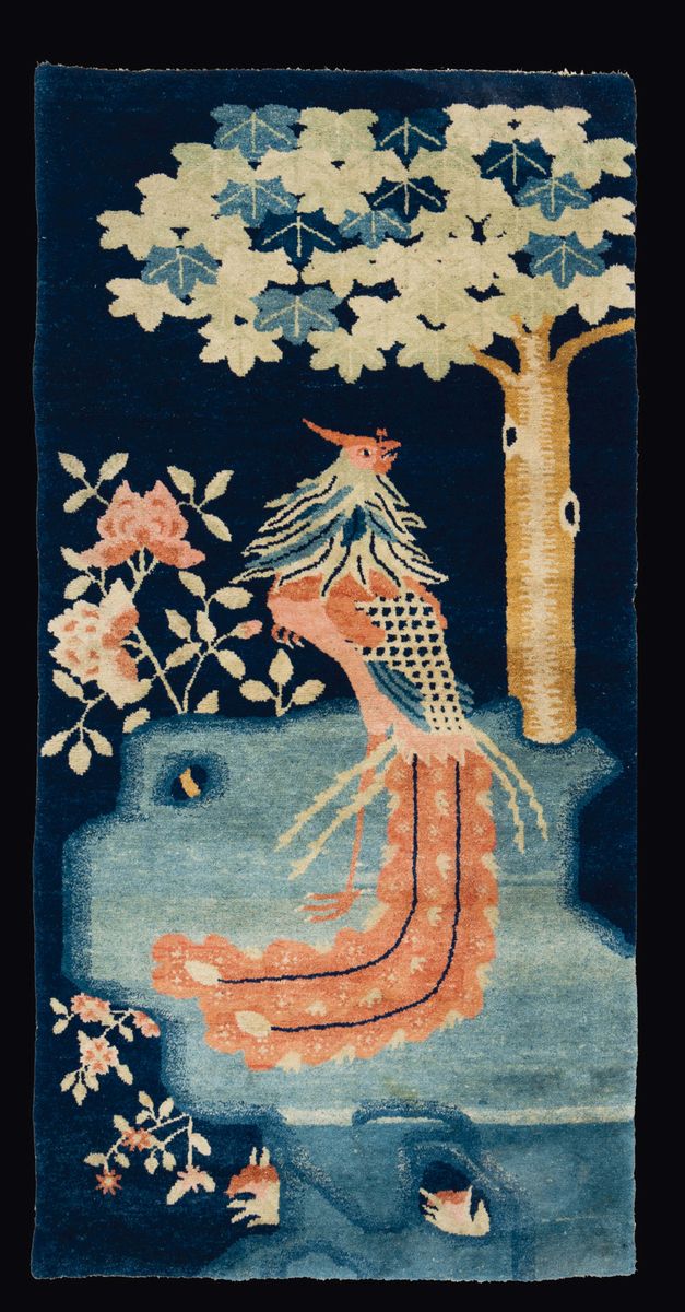 A carpet with a phoenix embroidery on a blue backdrop, China, 1930 ca.