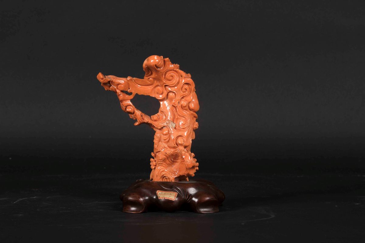 A carved coral figure of a wiseman, China, early 20th century