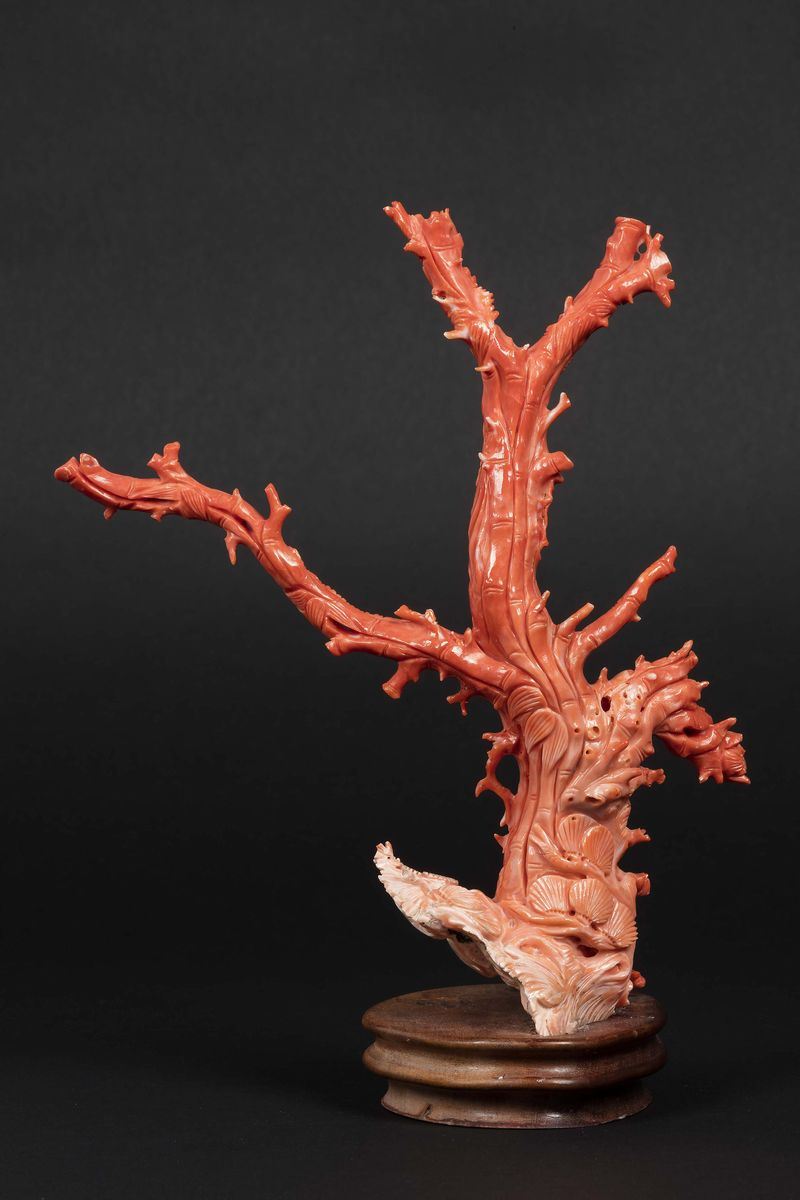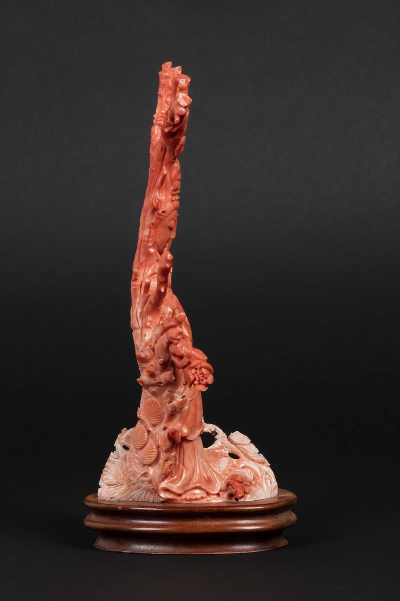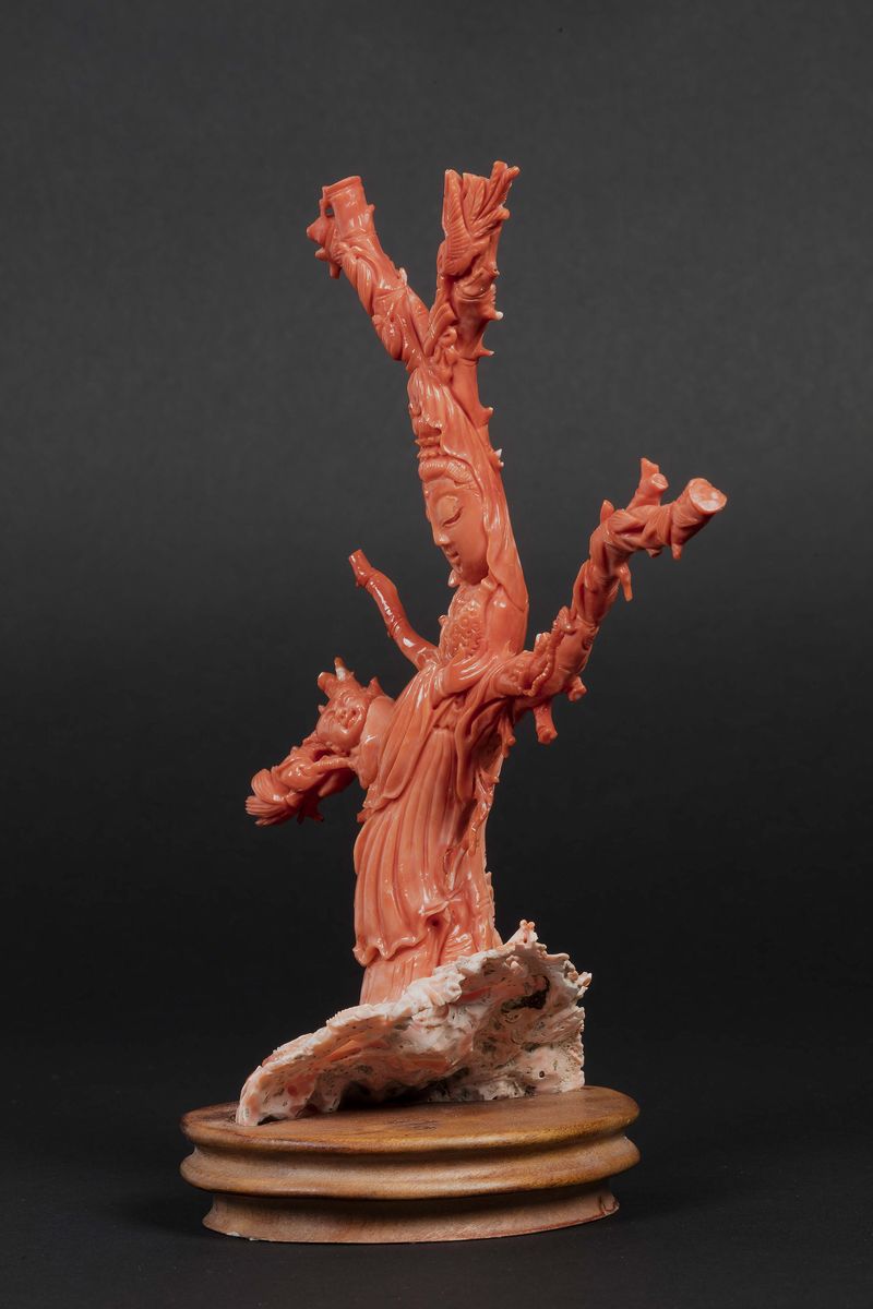 A carved coral Guanyin and child, China, Qing Dynasty, late 19th century