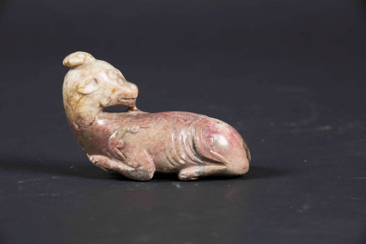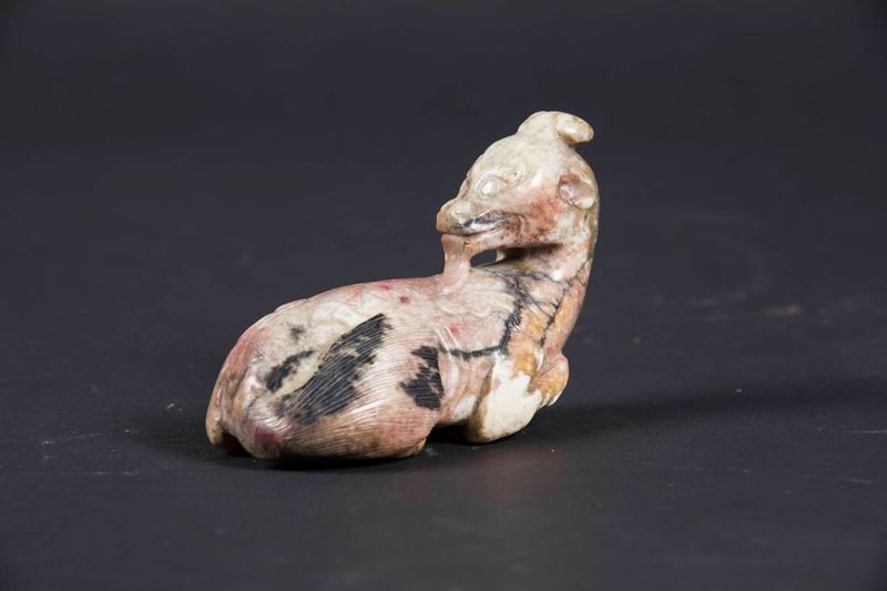 A carved polychrome jade figure of a fantastic animal, China, Qing Dynasty, late 19th century
