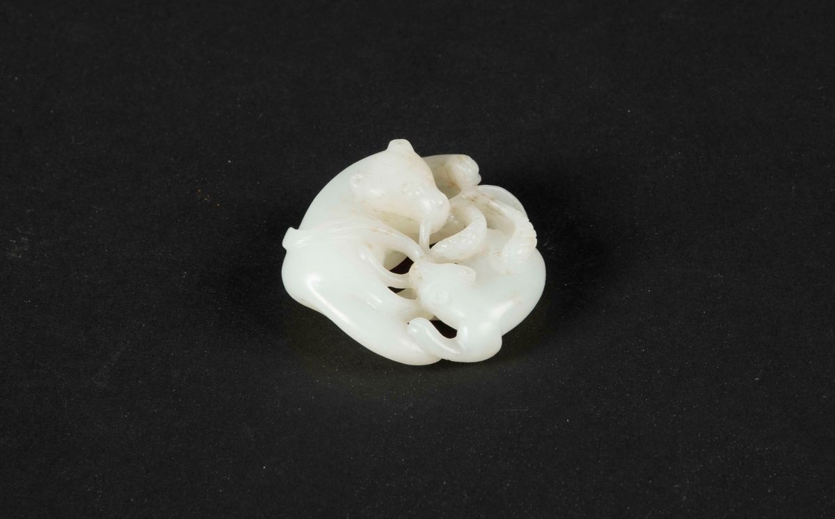 A carved white jade group with tigers, China, Qing Dynasty, 19th century