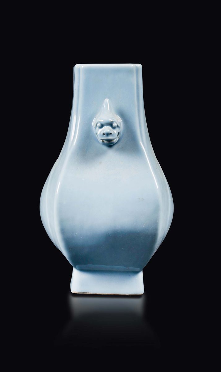 A Clair de Lune porcelain vase with handles in the shape of fantastic animals, China, Qing Dynasty, late 19th century