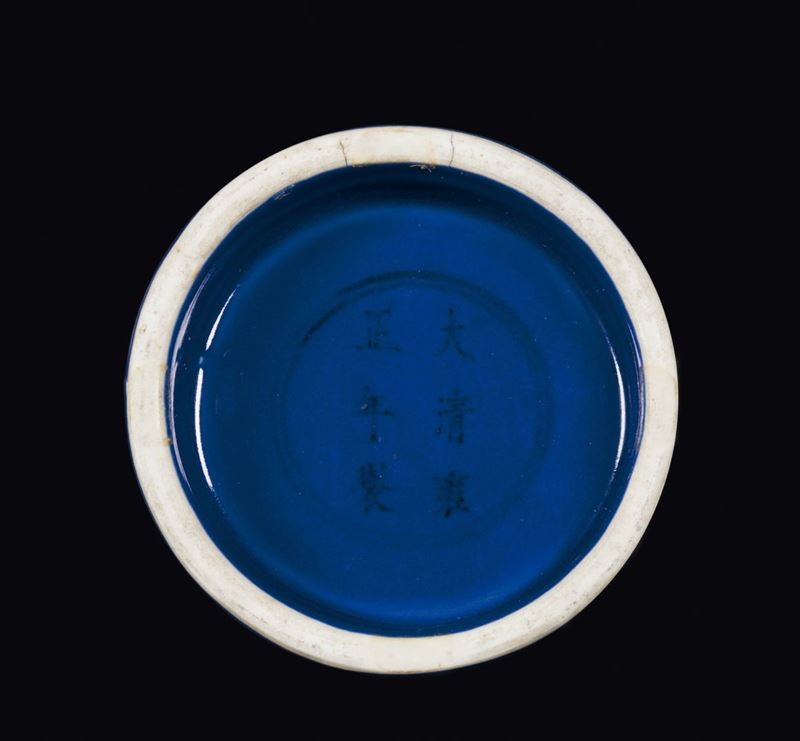 A monochrome blue porcelain Cong vase, China, Qing Dynasty, 19th century
