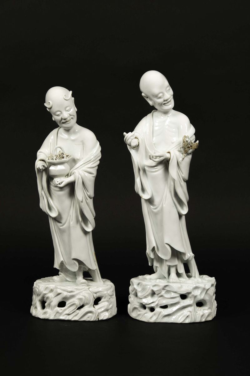 A pair of Blanc de Chine porcelain Liu Hai figures, China, Qing Dynasty, 18th century