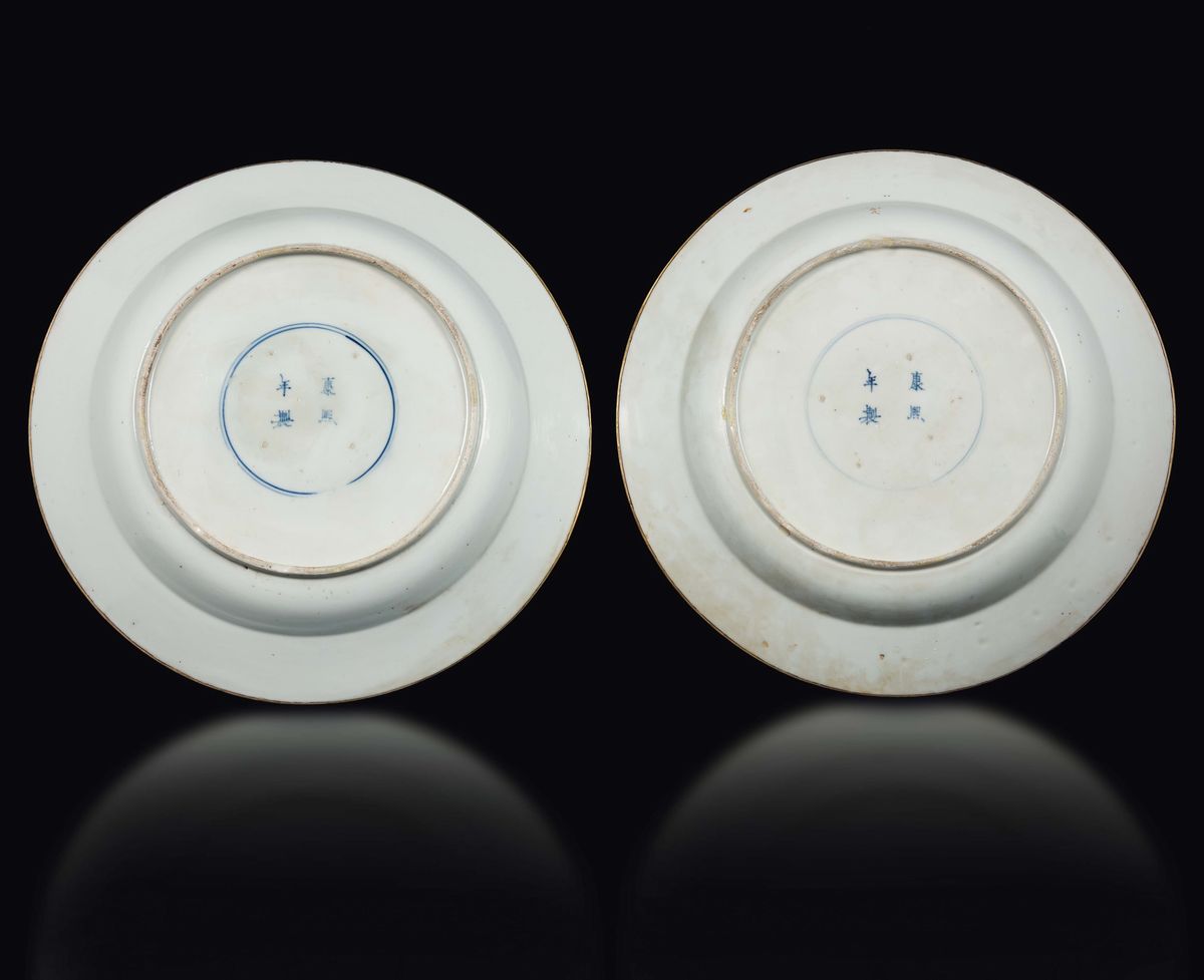 A pair of blue and white porcelain vases with a decor of five dragons in the clouds, China, Qing Dynasty, Kangxi period [..]