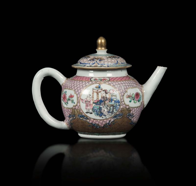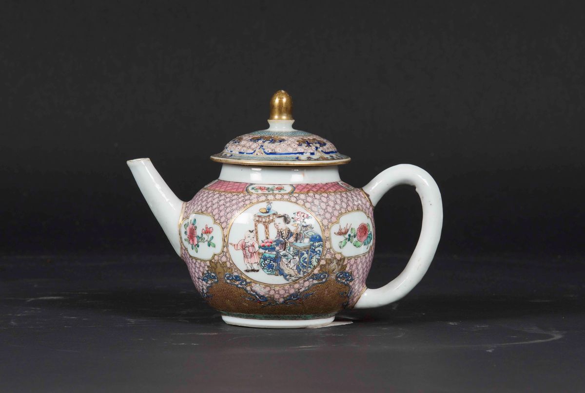 A Pink Family porcelain teacup with a Guanyin and child, China, Qing Dynasty, Qianlong period (1736-1796)