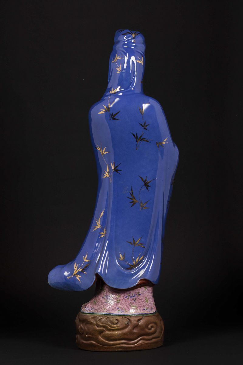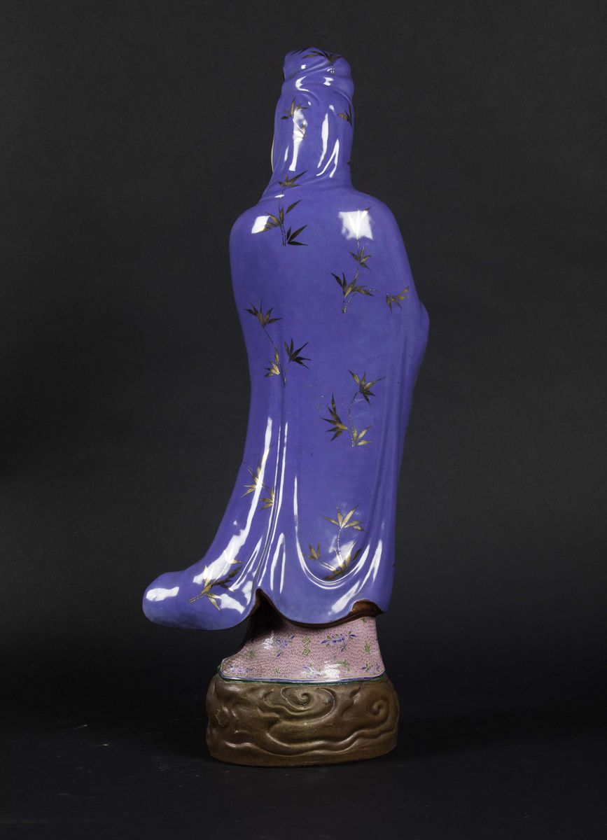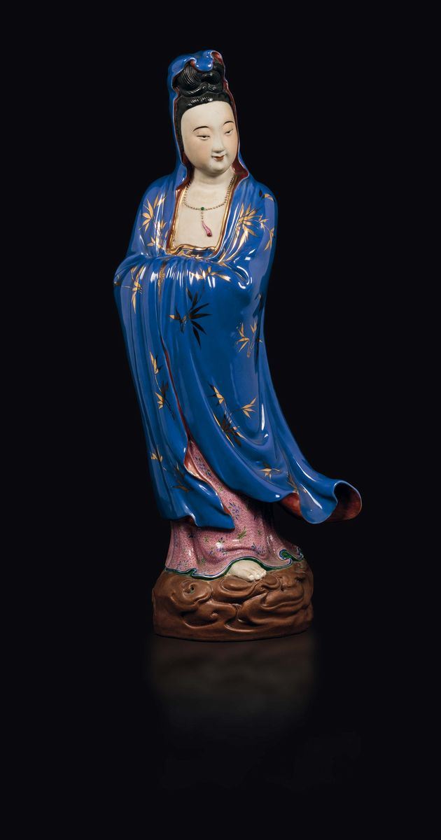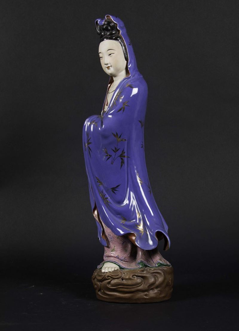 A polychrome glazed porcelain standing Guanyin, China, Republic, 20th century